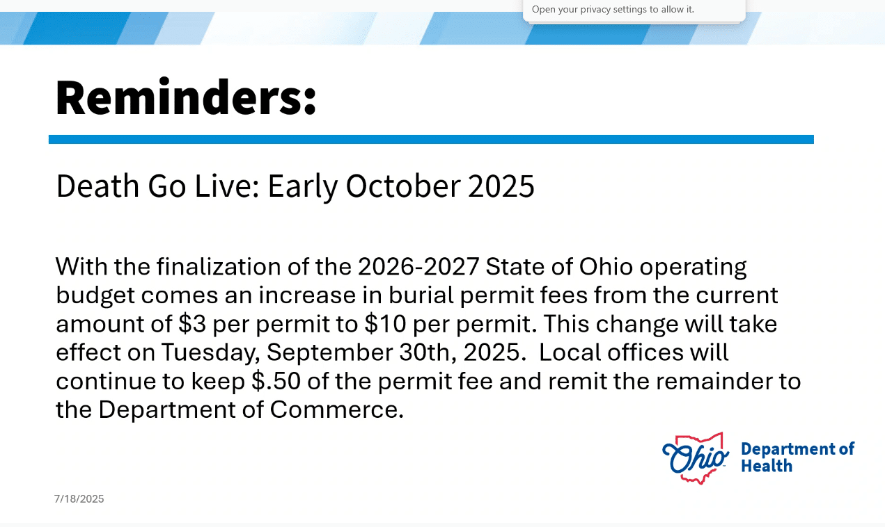 Increased Fee – Burial Permits